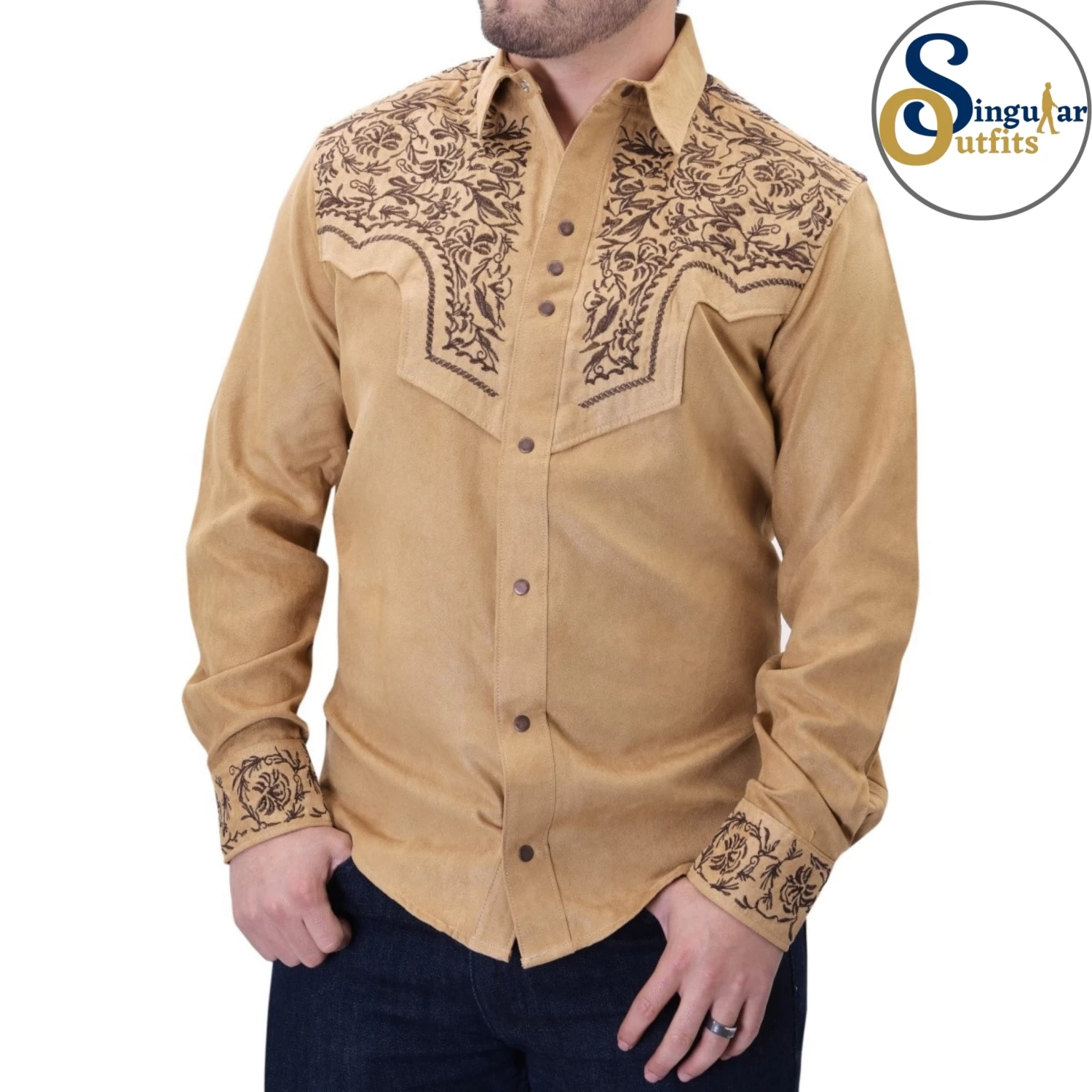 Camisa para hombre con diseño de bordado elegante y moderno, estilo clásico de manga larga. Es ideal para combinar con pantalones, botas, sombrero y cinto bordado.