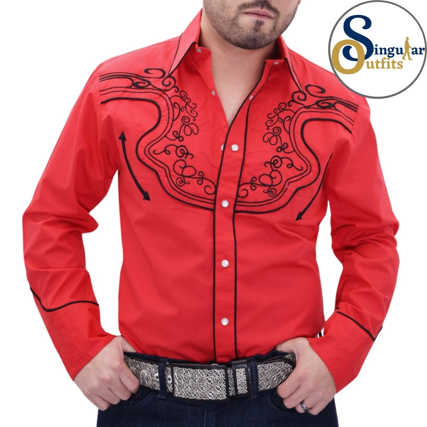 Camisa charra para hombre con diseño de bordado elegante y moderno, estilo clásico de manga larga. Es ideal para combinar con pantalones, botas, sombrero y cinto bordado.