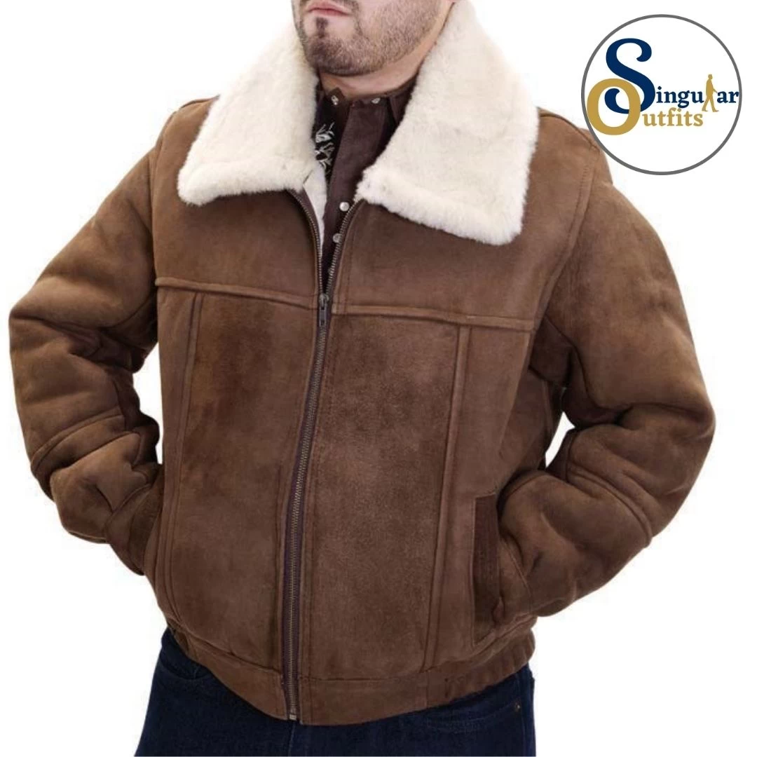 Chamarra de borrego cafe para hombre SO-WD1780 Men’s leather Jacket Singular Outfits