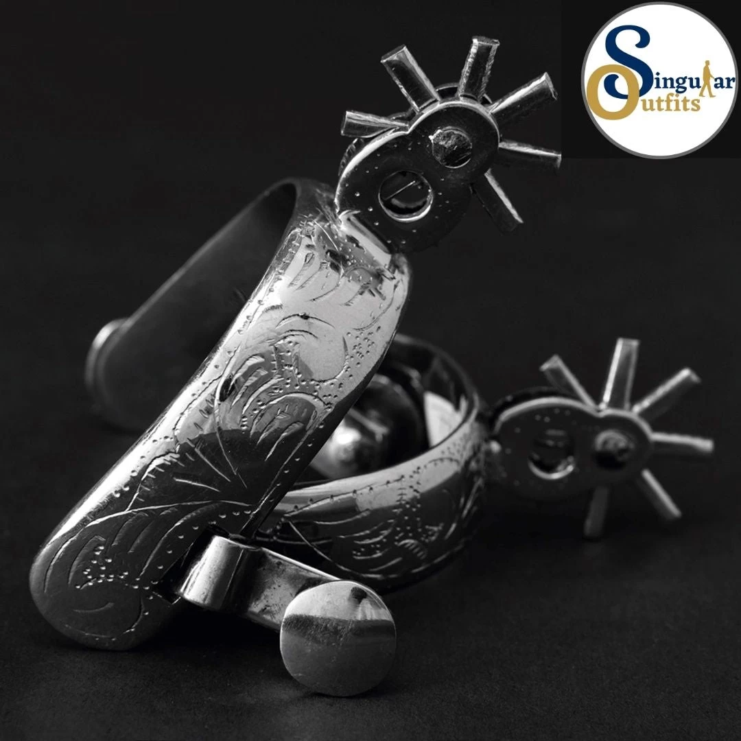 Charro Spurs made in Stainless Steel with Embossed. Traditional Mexican Spurs with fine engraved for Charro Kids. Handmade in Mexico.