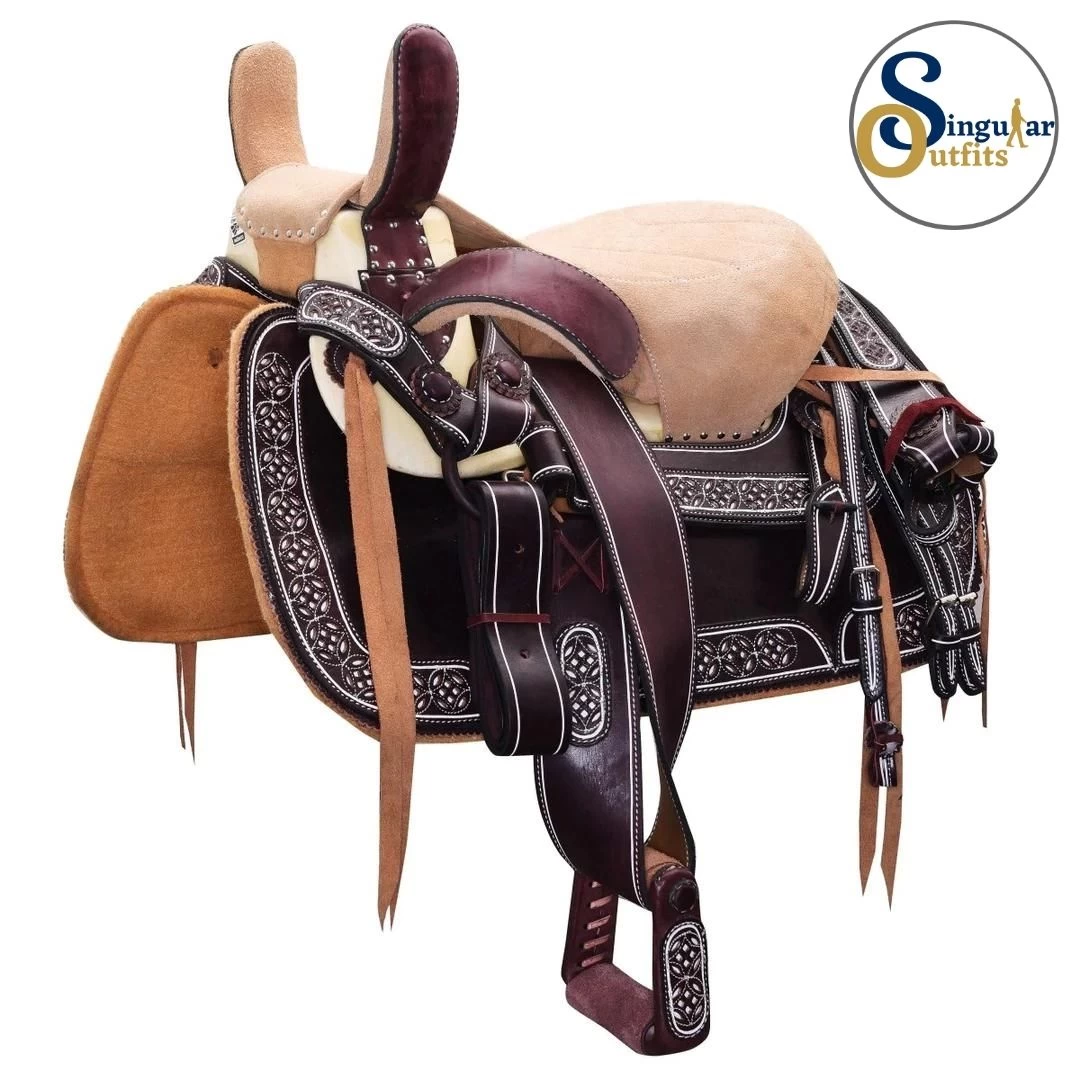 Montura Charra Albarda Mexicana vino basto redondo SO-WD1069 Mexican Charro Horse Saddle