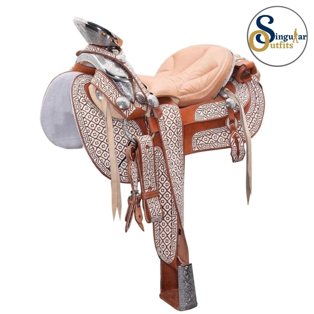 Montura charra Mexicana Bordada cola de pato miel SO-WD1052 Mexican Charro Horse Saddle