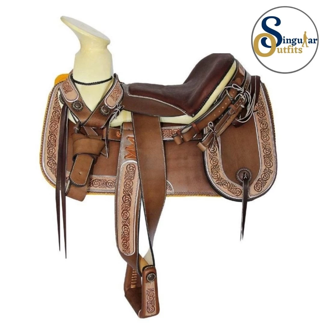 Horse saddles with decorative engraving. Charro saddles engraved and with traditional embroidery. These charro horse saddles are made in Mexico of the highest quality with many decorative details that make the saddle while horse riding stand out.
