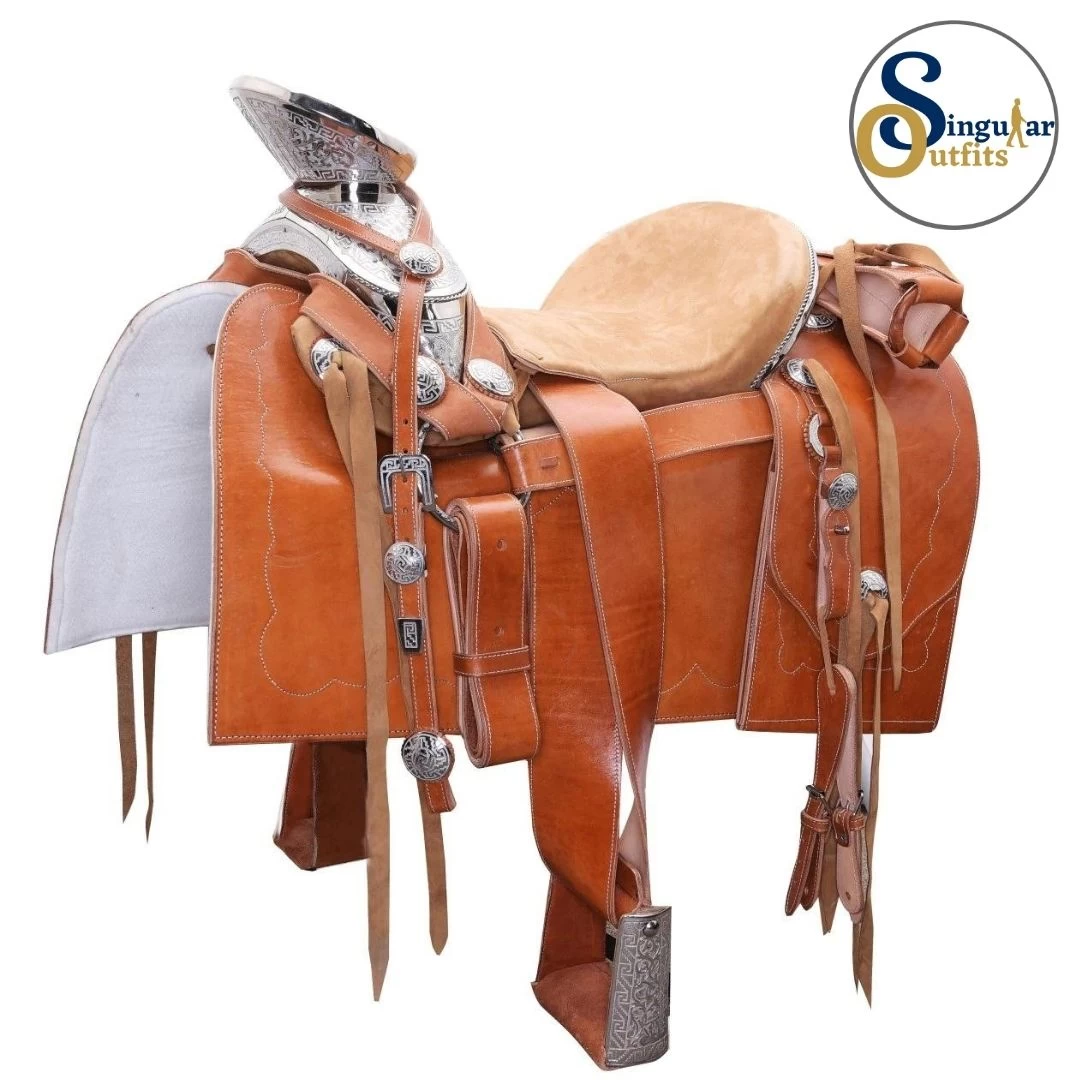 Sillas de montar vaqueras con grabado decorativo. Monturas charras grabadas y con bordados tradicionales. Estas sillas de montar charras esta hechas en Mexico de la mas alta calidad con muchos detalles decorativos que hacen que resalten a la ora de montar a caballo.