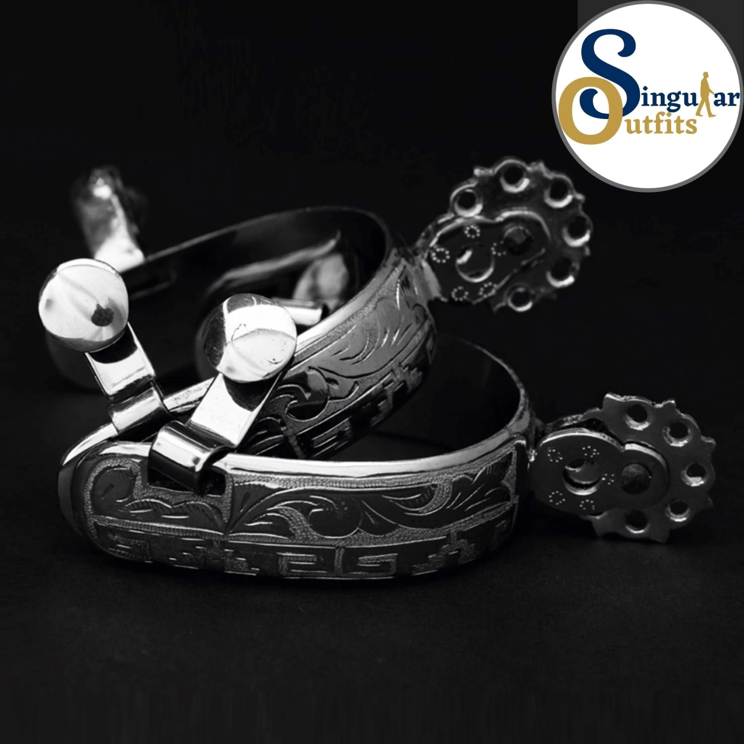 Espuelas Charras Finas de Acero Inoxidable con Grabado en Relieve – Espuelas para coleadero. Hecho a mano / Fine Stainless Steel Charro Spurs with Embossed. Traditional Mexican Spurs with fine engraved for Charros. Handmade in Mexico.