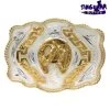 Hebilla vaquera fina tradicionales de acero inoxidable, grabada. Esta hebilla funciona con ropa casual, vaquera y charra, tanto para hombre como para mujer. Hecho a mano en Mexico.Â