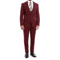 Men’s three-piece suit. This three-piece formal suit for men is perfect for any special event you need to dress elegant for or any business meeting. The 3-piece business suit is an outfit that includes dress pants, a formal vest, and a formal jacket.
