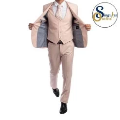 Men’s three-piece suit. This three-piece formal suit for men is perfect for any special event you need to dress elegant for or any business meeting. The 3-piece business suit is an outfit that includes dress pants, a formal vest, and a formal jacket.