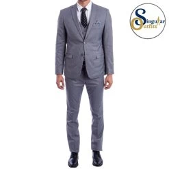 Traje de vestir de tres piezas para hombre. Este traje formal de tres piezas es perfecto para cualquier evento especial al que necesites vestir elegantemente o cualquier junta de negocios. El traje de negocios de 3 piezas es un atuendo que incluye unos pantalones de vestir, chaleco formal y un saco formal.